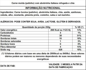 5 un. Carne moída (patinho) com abobrinha italiana refogada e chia – Peso liq. 250g/cada