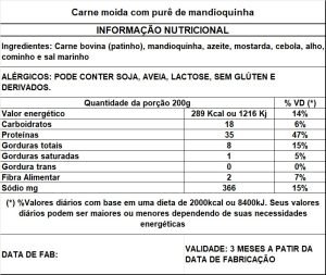 Seja o primeiro a avaliar “Carne moída (patinho) com purê de mandioquinha 200g”