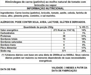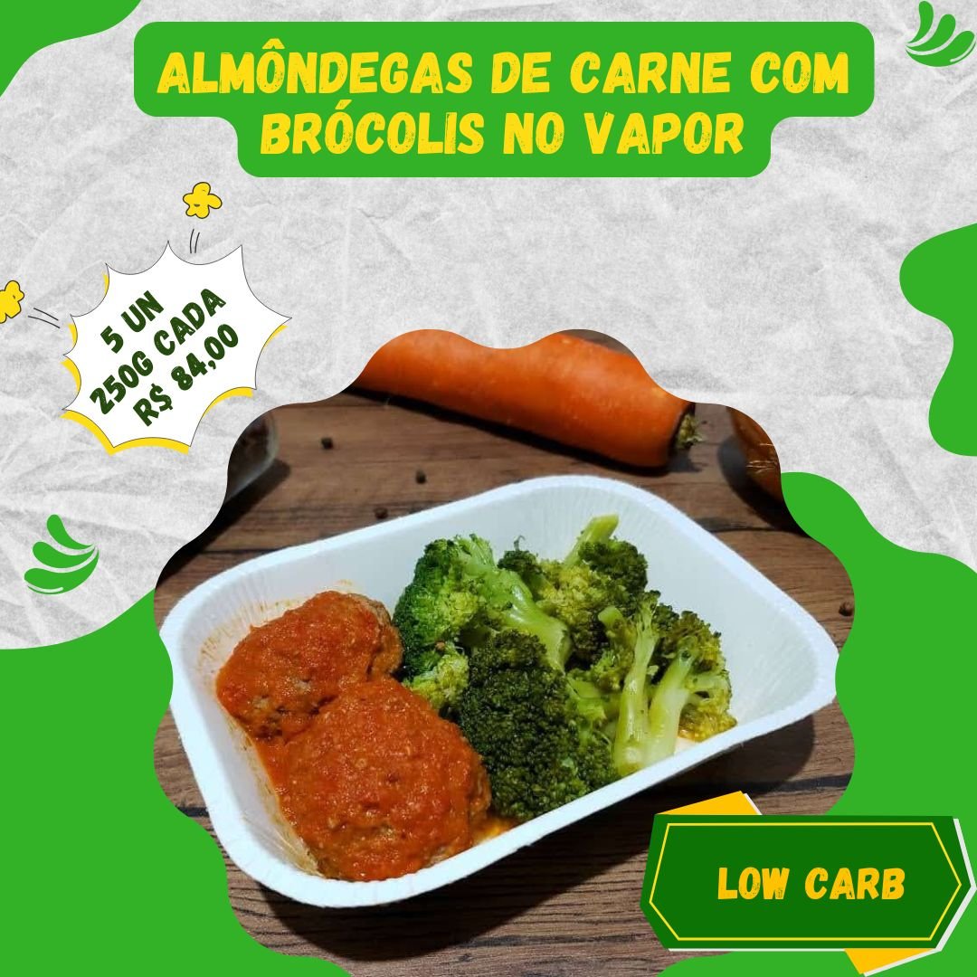 5 un. Almôndegas de carne com brócolis no vapor 250g/cada