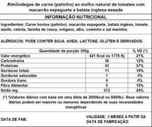Seja o primeiro a avaliar “5 un. Almôndegas de carne (patinho) com macarrão integral e batata inglesa assada 350g/cada”