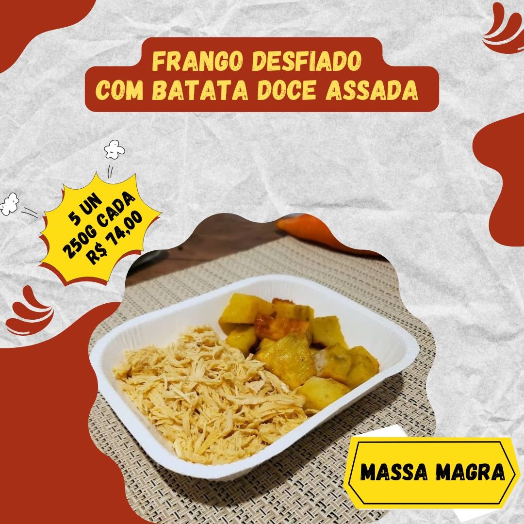5 un. Frango desfiado com batata doce assada 200g/cada