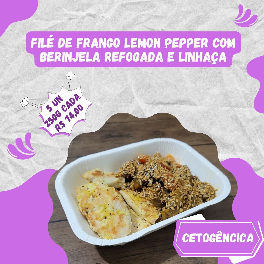 | Frango grelhado lemon pepper com berinjela refogada e linhaça dourada | ||