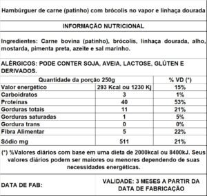 | Modo de preparo | – 5 a 6 minutos no micro-ondas se congelada. |